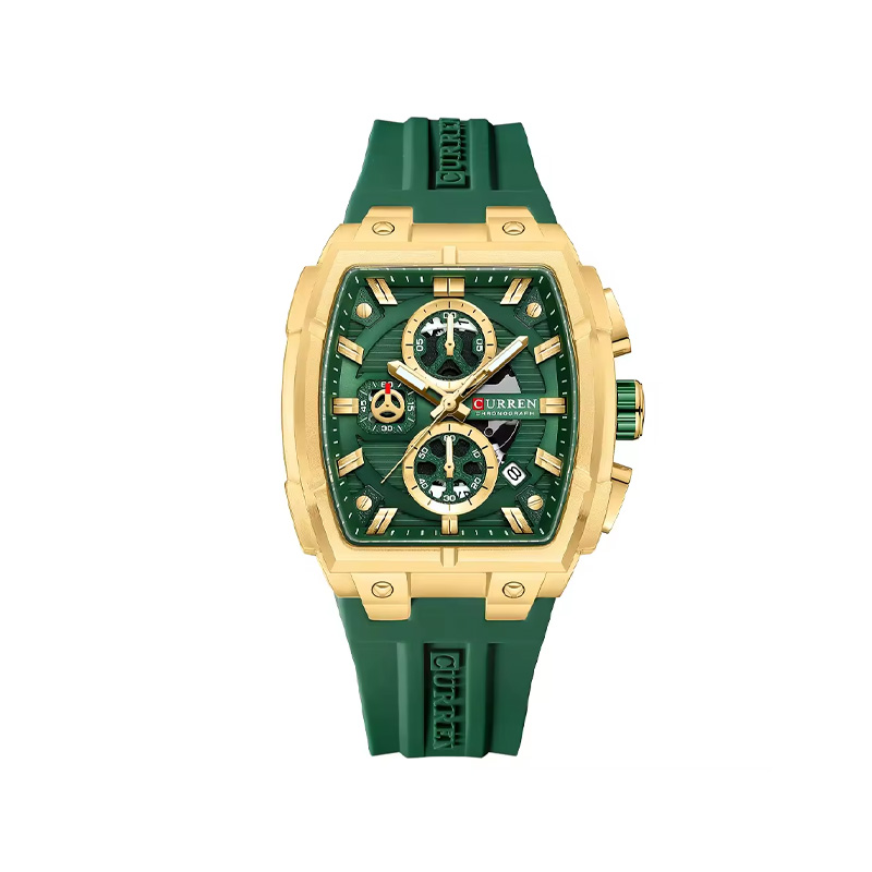 CURREN 8488 Chronograph Silicone Wristwatch Watch For Men- Golden Green
