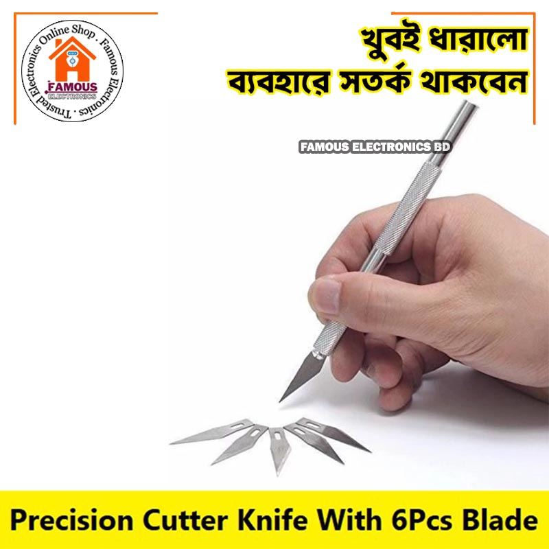 - Cuts paper, plastic, balsa, thin metal, cloth, film and aceta