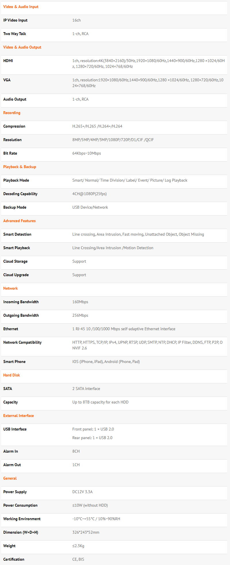 - 16CH, 2 SATA NVR