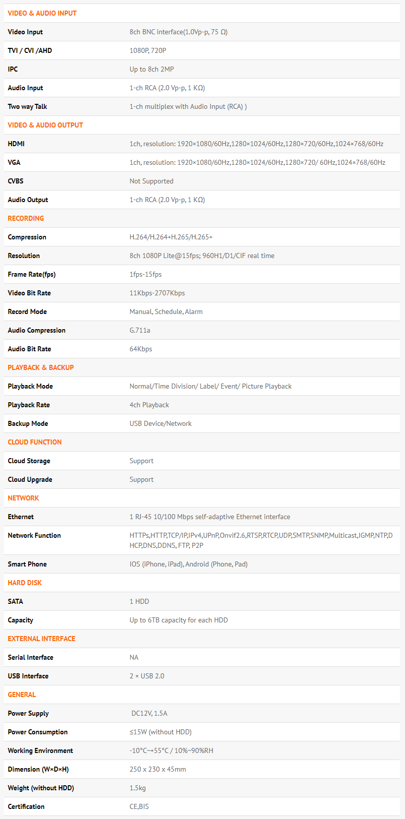 • AHD/TVI/CVI/IP cameras up to 2MP