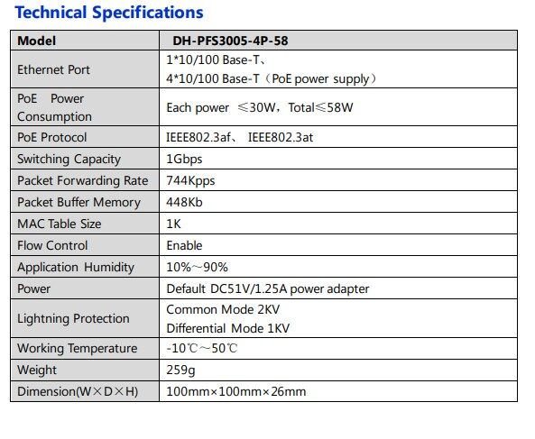 Dahua Technology 4-Port Unmanaged PoE Ethernet Switch