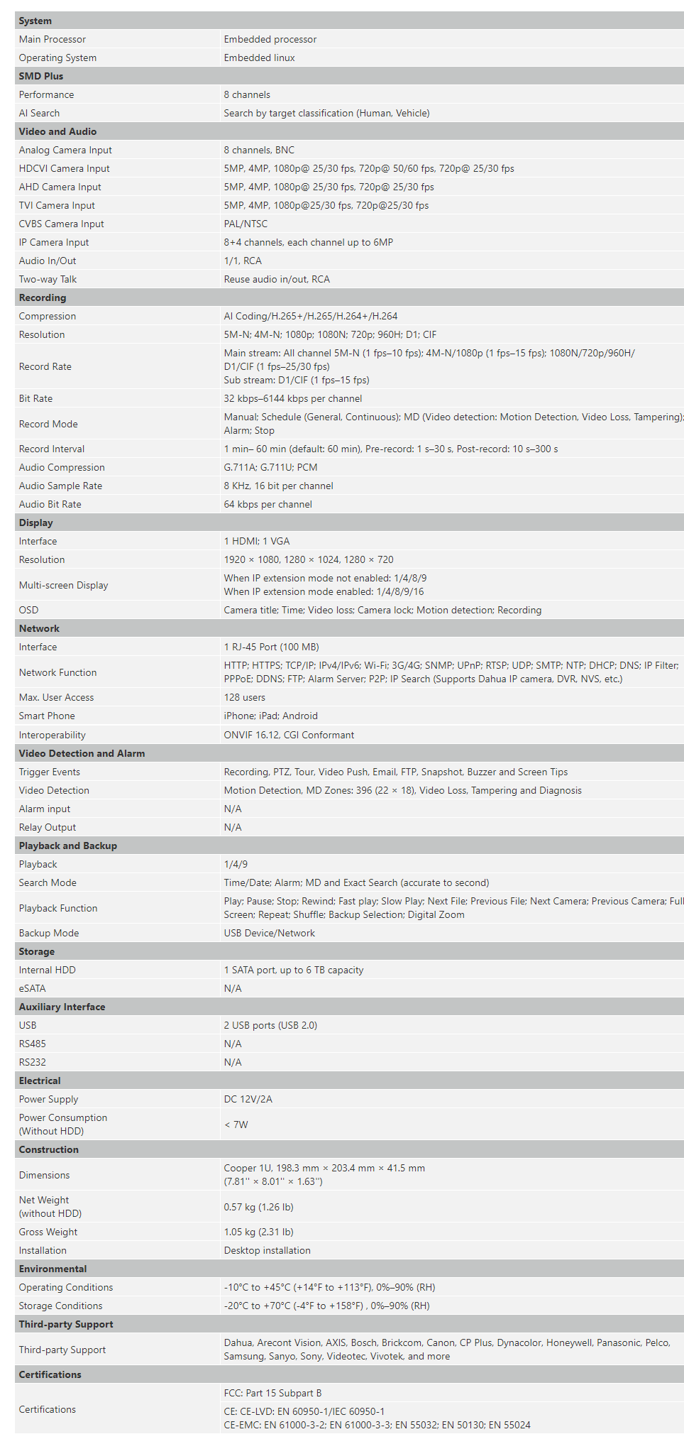 - Supports HDCVI/AHD/TVI/CVBS/IP video inputs