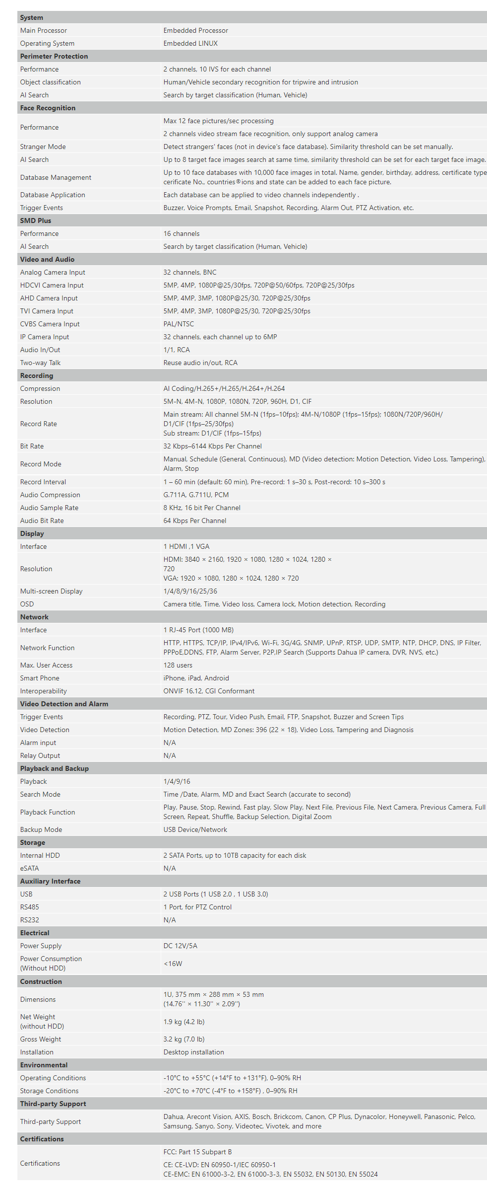 XVR5232AN-I2 32 Channel Penta-brid 5M-N/1080P 1U 2HDDs WizSense Digital Video Recorder