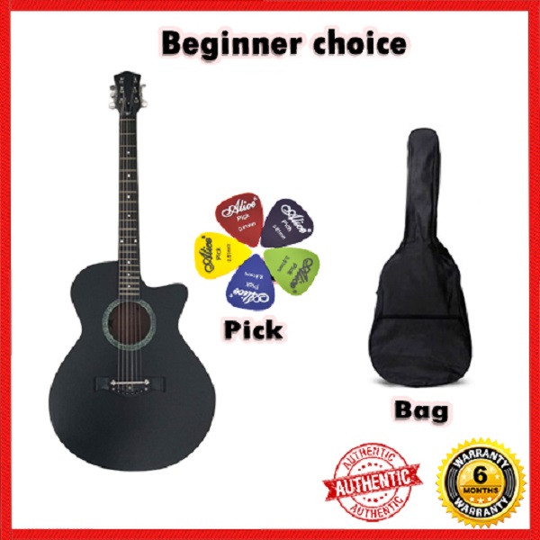 Introducing the Dark DK-100B, your best beginner's choice for a premium acoustic guitar that comes with a bag and picks in a sleek black design. Here are some key features:
