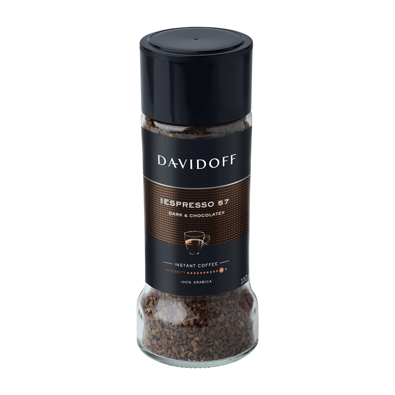DAVIDOFF Espresso 57, a dark, intense roast, produces a true, distinctive espresso flavor with a smooth aroma and light chocolate notes. The secret of type Espresso 57 lies in the fine balance between roasting time and temperature that creates its intense and characteristic Espresso taste.