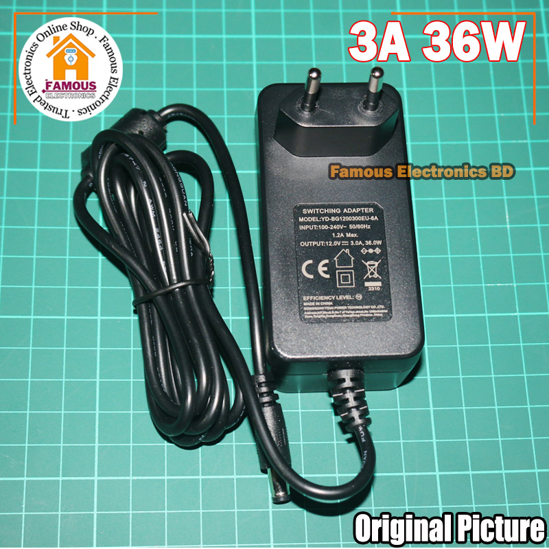 DC 12V 3A AC 100-240V Converter Adapter Charger Power Supply 3A High Quality Adaptor (Black) - Black