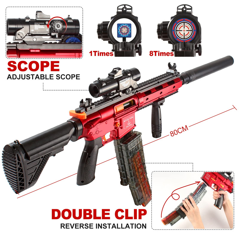 The Automatic Toy Gun M416 offers a thrilling 2-in-1 shooting experience with both manual and automatic modes. It comes equipped with 120 soft foam darts, a rechargeable battery, and a dart window for real-time monitoring. Perfect for kids aged 8-12, this toy gun promotes hand-eye coordination and is ideal for various play settings, making it a fantastic gift for young shooting enthusiasts.