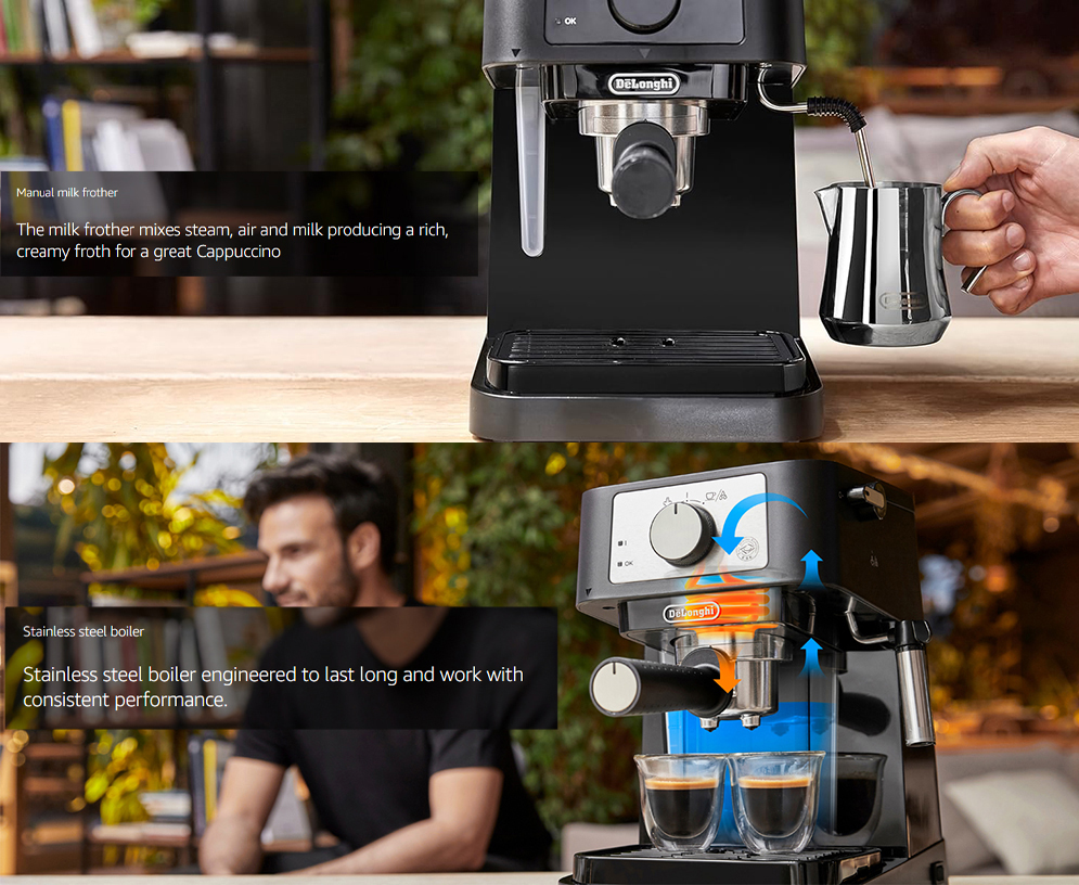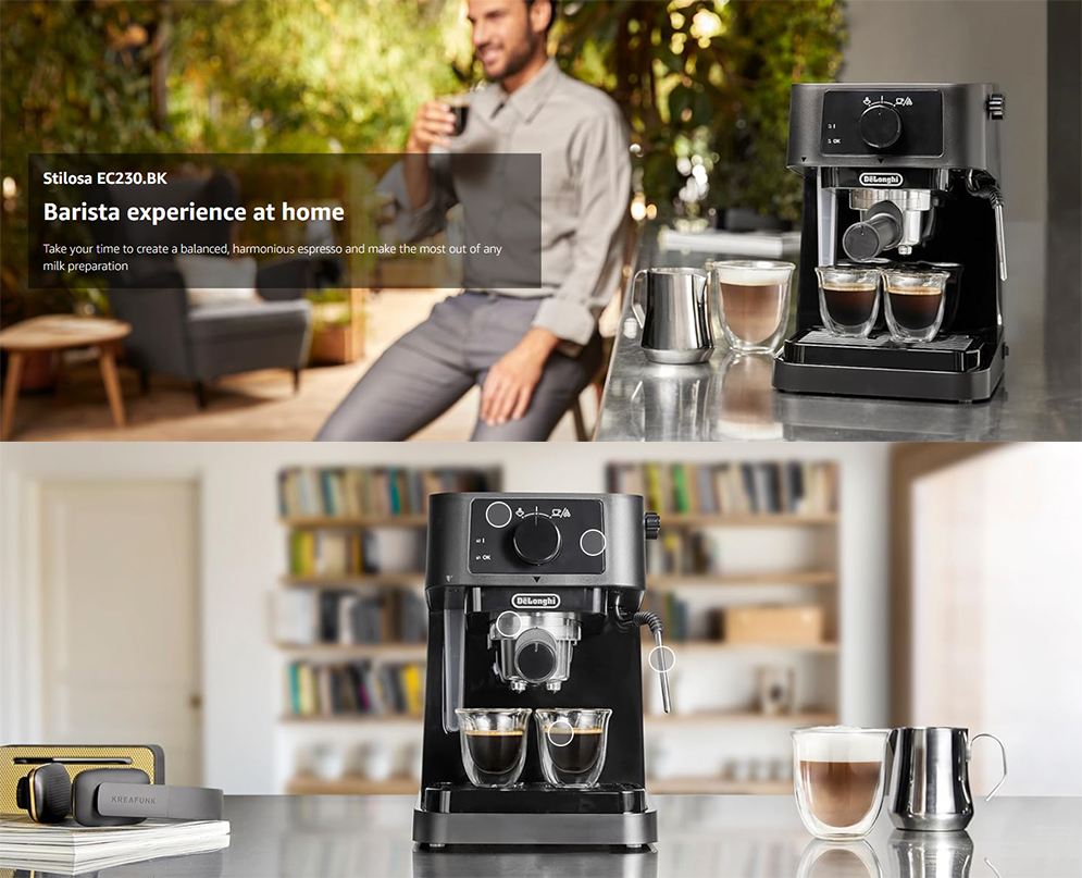 De’Longhi EC230.BK Stilosa Traditional Barista Manual Pump and Cappuccino Coffee Machine