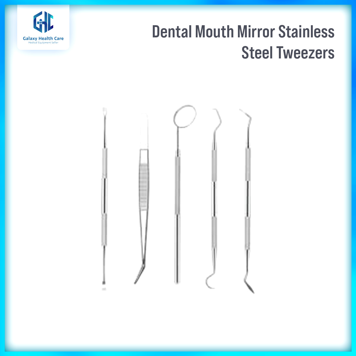 Three-piece set: tweezers, elbow probe, mouth mirror