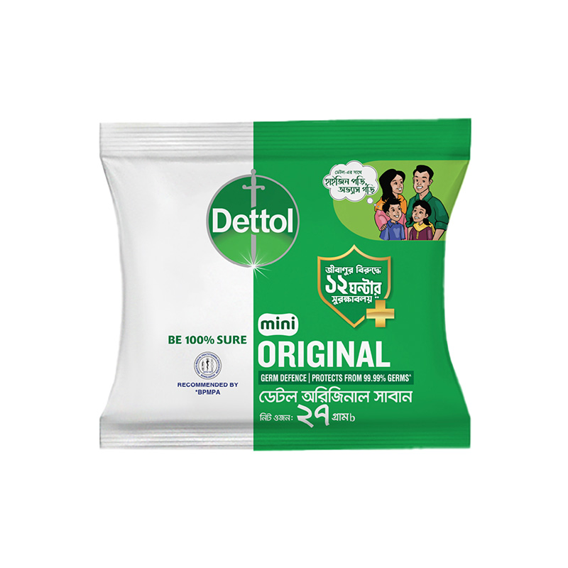 • Dettol soap Original bathing bar soap is a Grade-1. It comes with the classic Dettol fragrance. It cleanses and protects your skin for a hygienic clean and healthy, refreshing feeling every day. Be 100% sure. Get Dettol's trusted protection from a wide range of unseen germs. Dettol is recommended by Bangladesh Private Medical Practitioners Association (BPMPA). Available in Original, Cool, Skincare, Aloe Vera & Fresh variants.