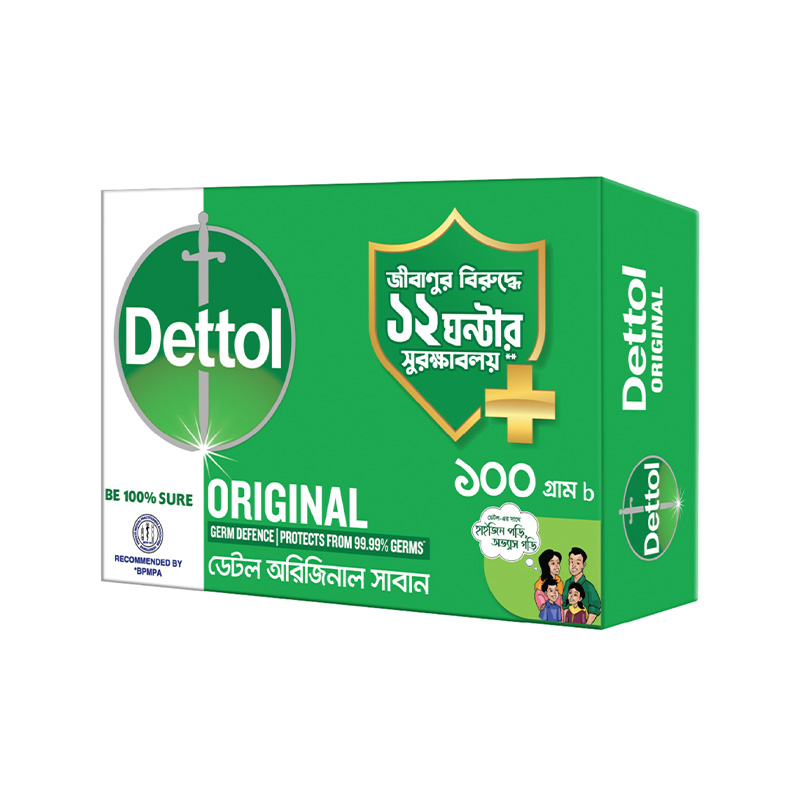 • Dettol soap Original bathing bar soap is a Grade-1. It comes with the classic Dettol fragrance. It cleanses and protects your skin for a hygienic clean and healthy, refreshing feeling every day. Be 100% sure. Get Dettol's trusted protection from a wide range of unseen germs. Dettol is recommended by Bangladesh Private Medical Practitioners Association (BPMPA). Available in Original, Cool, Skincare, Aloe Vera & Fresh variants.