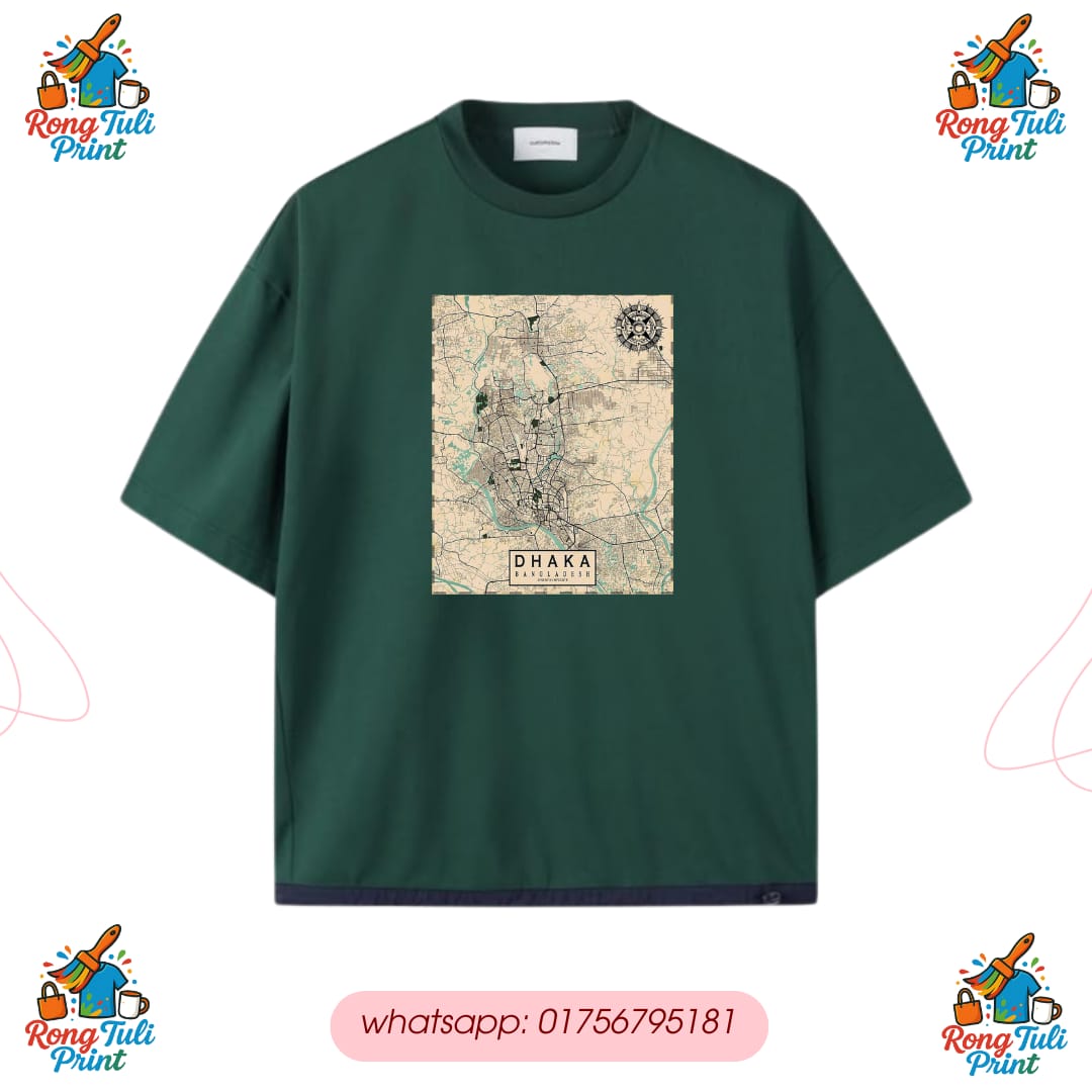 Dhaka City Print Oversized Drop Shoulder T-Shirt – Unisex Loose Fit Emerald Green