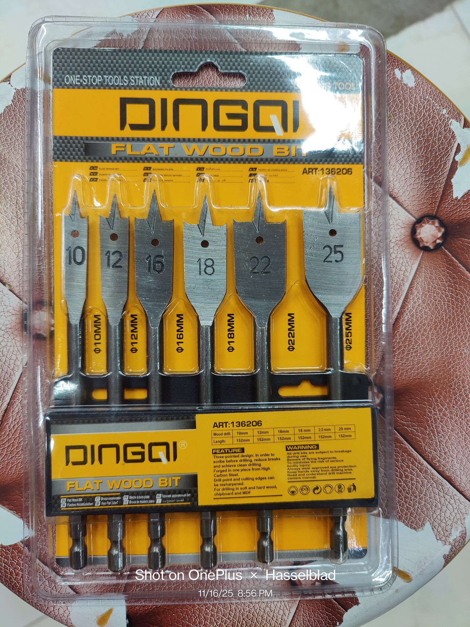 DINGQI Flat Wood Bit Set হল পেশাদার ও ডিআইওয়াই কাঠের কাজের জন্য এক সম্পূর্ণ নির্ভরযোগ্য টুলস সেট। 10mm থেকে 25mm পর্যন্ত ৬টি জনপ্রিয় সাইজে তৈরি এই বিটগুলো উচ্চমানের কার্বন স্টিল দিয়ে তৈরি, যা দীর্ঘদিন ধার ধরে। শার্প ব্লেড এবং স্মুথ ফিনিশিং ড্রিলিংকে করে আরও দ্রুত, নিখুঁত ও পরিষ্কার।