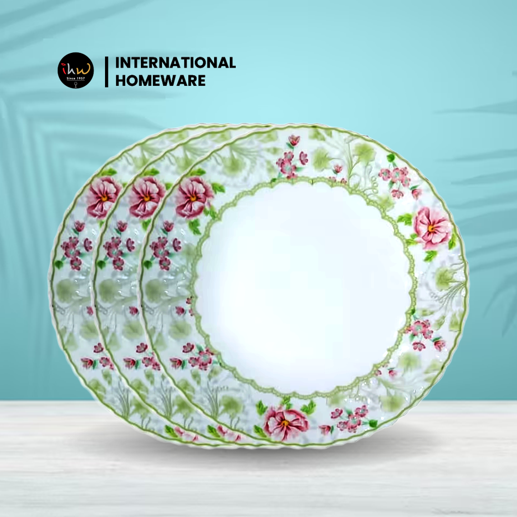 Opal Glass Dinner Plate Flat 10.5″ - 6-Piece Set (Printed Design)