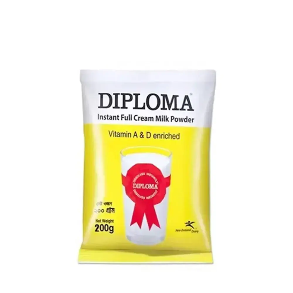 - Diploma Instant Full Cream Milk Powder – 200gm is a premium-quality milk powder enriched with Vitamin A & D, designed to provide both nutrition and great taste. With 29% milk fat content, it delivers a rich, creamy texture that enhances your daily dairy intake. Its instant formula ensures quick and hassle-free preparation, making it a convenient choice for modern households.