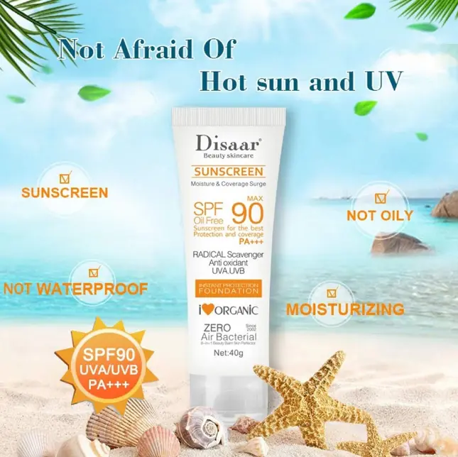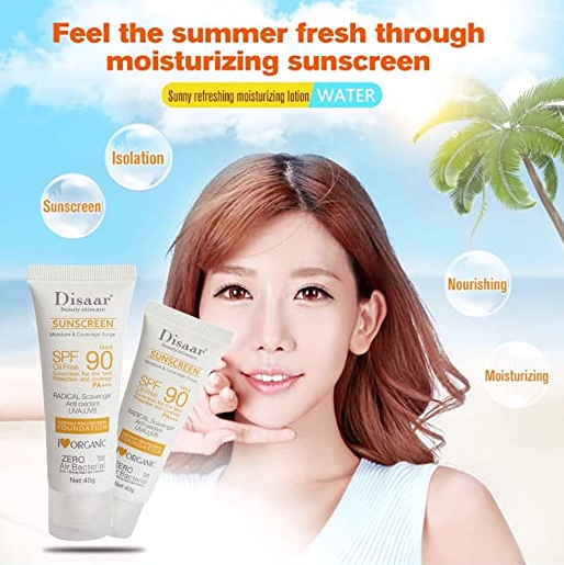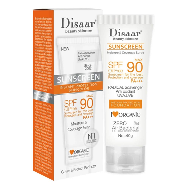 - DISAAR SPF90+Sunscreen Bronz Foundation PA+++ Oil Free Sunblock Protection 40g