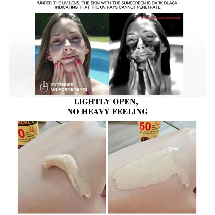 this su-block has unique UV protection element, forms a tight protective network on the skin surface to block UVA/UVB damage, helps inhibit free radical, increases the skin's defending ability, pampers cells, enhances elasticity and prevents wrinkles & fine lines.