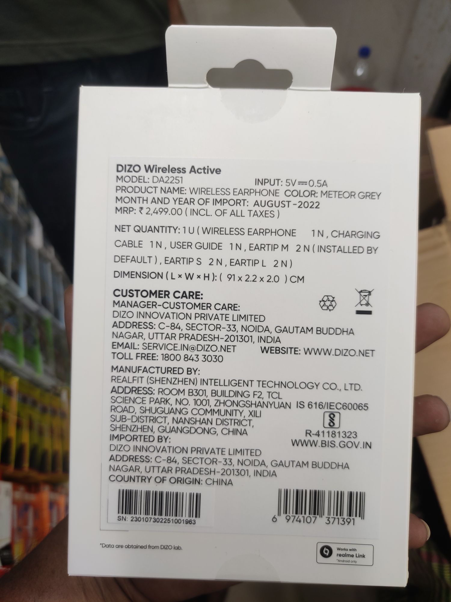 - Model: DIZO Wireless Active
