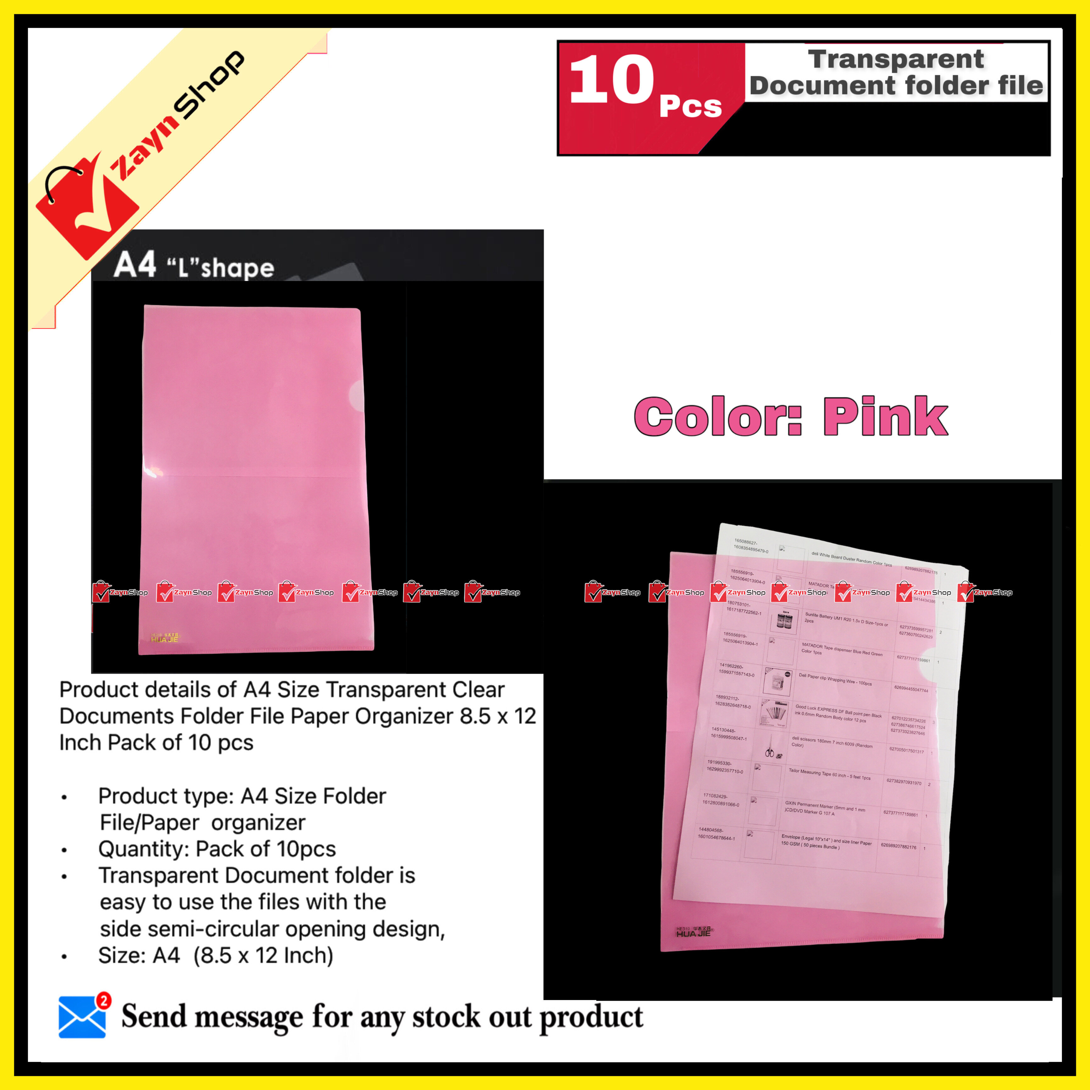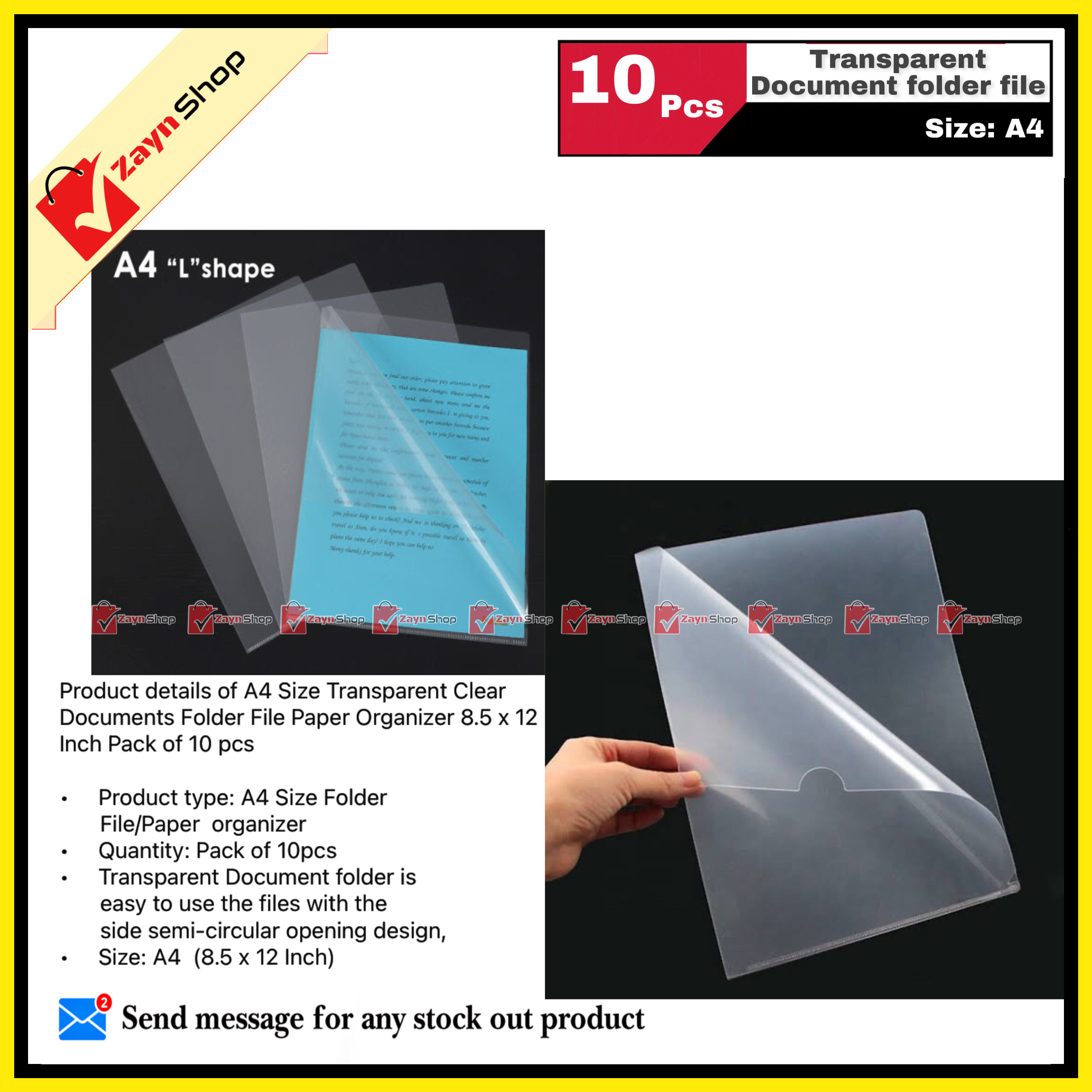 Product details of A4 Size Transparent Clear Documents Folder File Paper Organizer 8.5 x 12 Inch Pack of 10 pcs