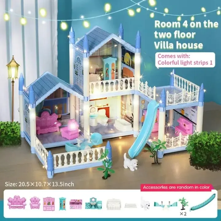 Fantastic Lighting - The blue dollhouse comes with white lights that illuminate the whole house in the dark and look more fantastic. The doll house will become the perfect party place. Fairy tales will start from here, and little boys and girls will dance happily!
