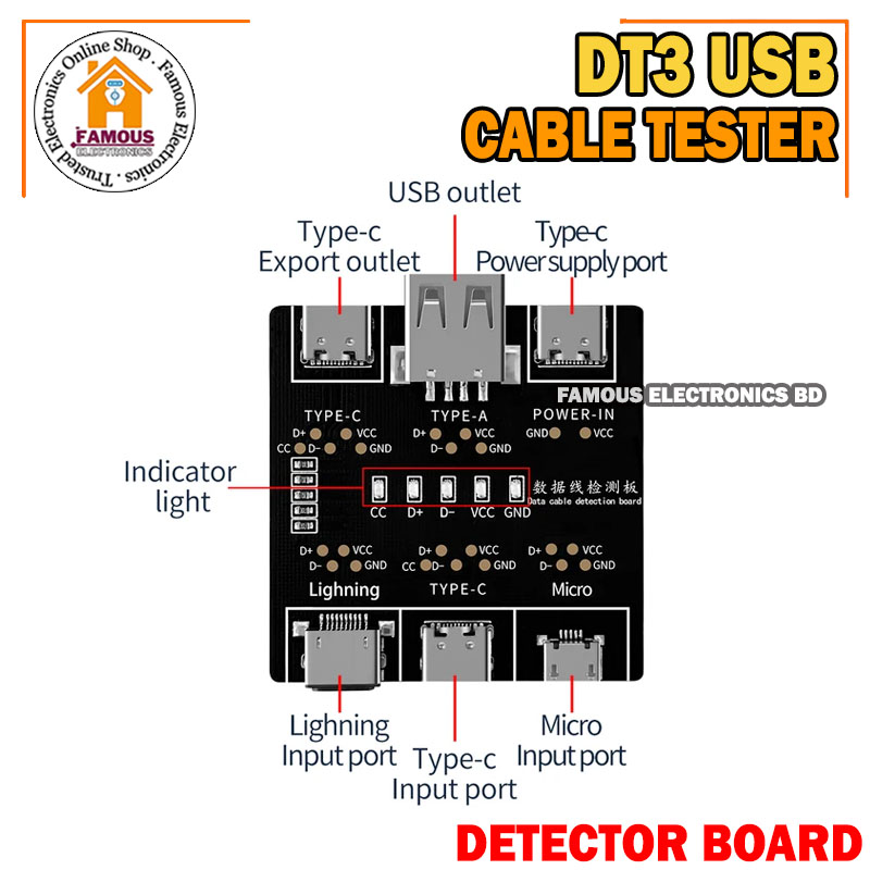 Quick detection of data line on and off: the light is on when the power is normal, and when the light is off, the power is abnormal.