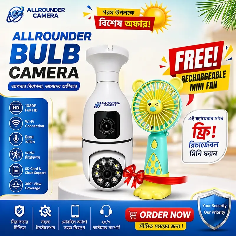 - আপনার দোকান, অফিস, বাসা-বাড়িকে নিরাপদ রাখতে 360° WiFi IP ক্যামেরাটি অর্ডার করুন।