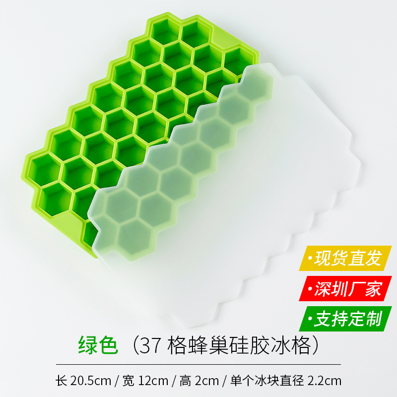 Product details of Durable Silicone Ice Cube Tray Mold – 37 Cavities, Honeycomb Shape, Stackable, Dishwasher Safe with Lid