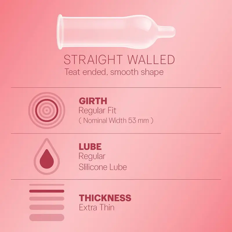 Straight walled condoms that smell better Transparent & lubricated natural rubber latex condoms Dermatologically tested and 100% electronically tested; 100% safe and secure.