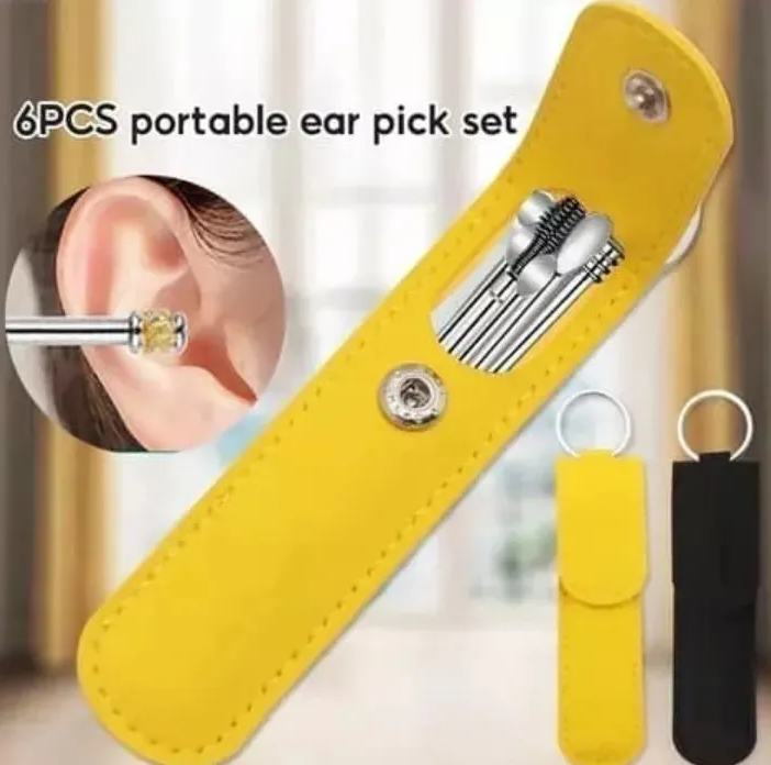 The 6-Piece Portable Ear Pick Set is a high-quality ear cleaning toolset designed for effective and safe ear hygiene. Made from durable stainless steel, this set offers a variety of tools to ensure a thorough and gentle cleaning experience. Its sleek leather case keeps the tools organized and travel-friendly, making it an essential addition to your grooming routine.
