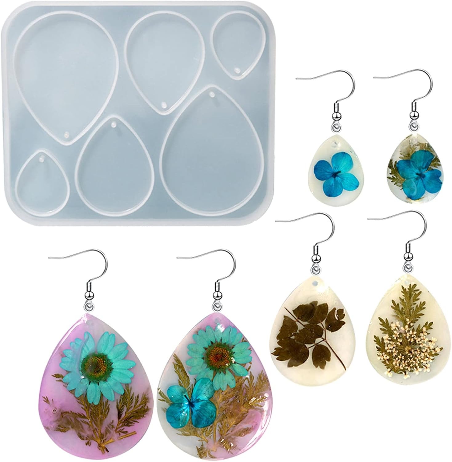 Flexible silicone mold designed for creating resin earrings, jewelry charms, and lightweight handmade fashion accessories.