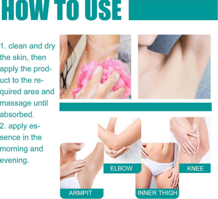 - Use: Underarm, Dark Knuckles Elbows, Fingers and Inner Thigh