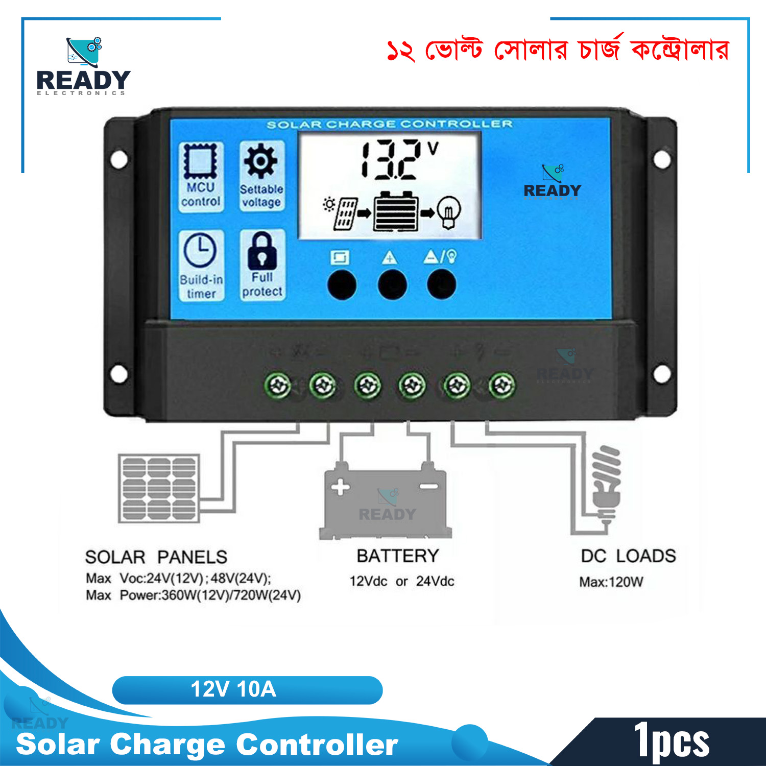 - 10A Solar Charge Controller 120W, LCD Display & MCU Control- 12V 10A