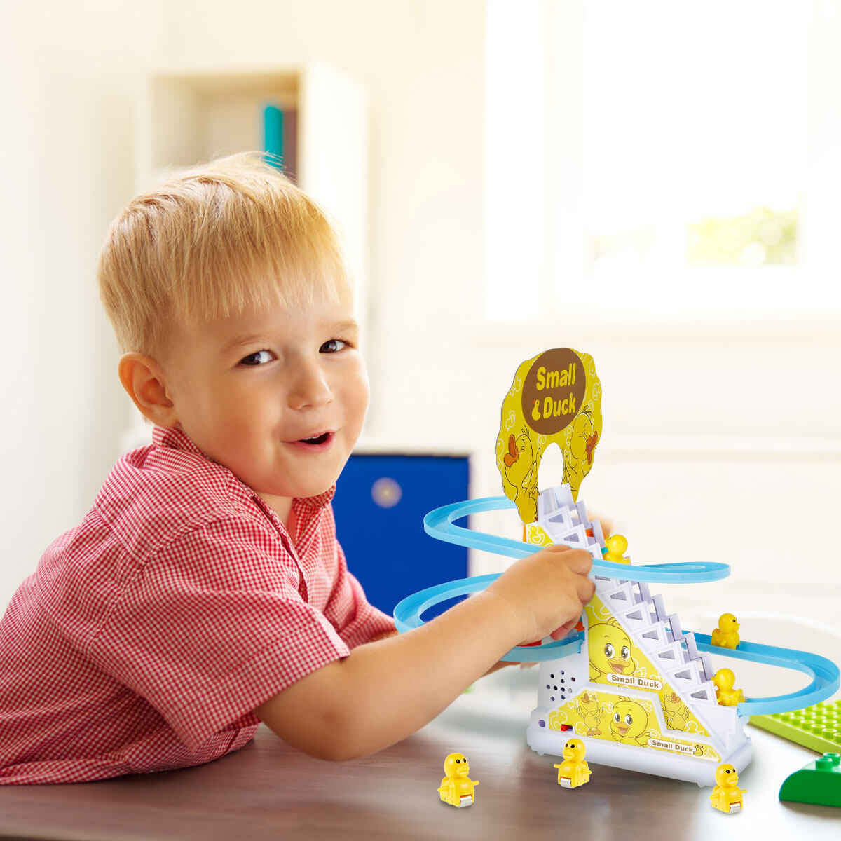 শিশুদের খেলার সময়কে মজাদার, শিক্ষামূলক এবং সঙ্গীতসহ উপভোগ করার জন্য এটি একটি আদর্শ ইলেকট্রিক কার্টুন ডাক ট্রেন খেলনা।