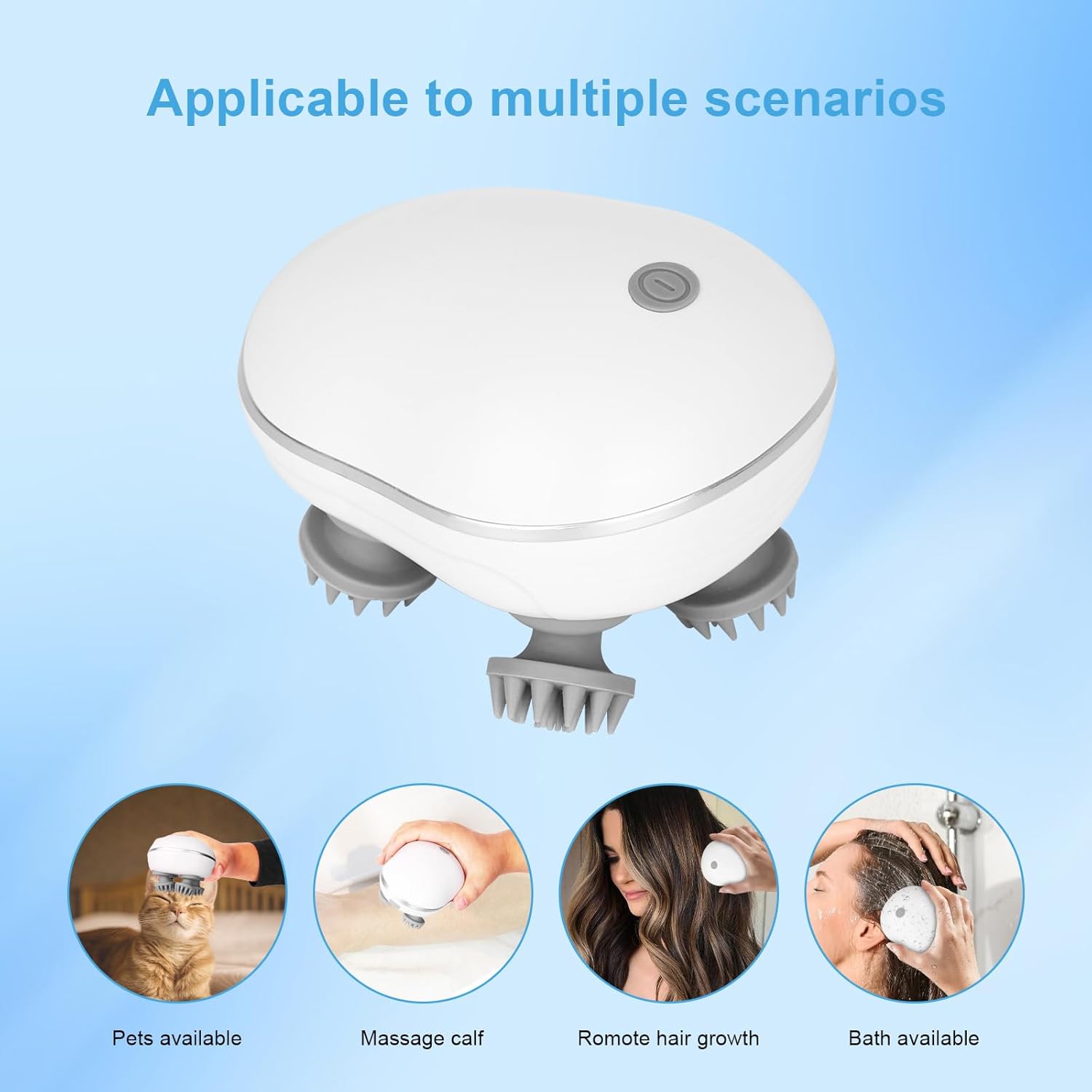 ✅ ৪টি ঘূর্ণায়মান সিলিকন হেড: মাথার ত্বকে নরমভাবে ম্যাসেজ করে রক্ত চলাচল বাড়ায়