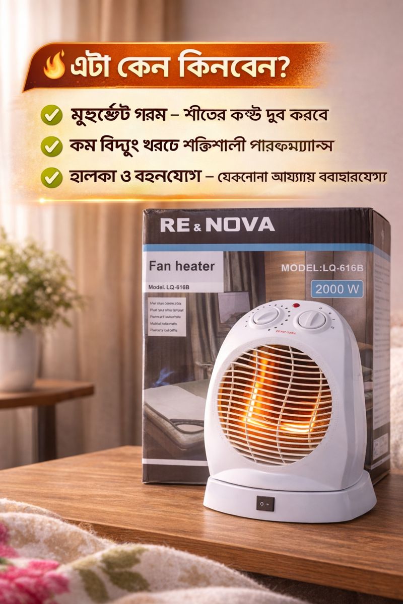 RE & NOV Electric Room Heater শীতের মৌসুমে ঘরকে আরামদায়ক উষ্ণতা দিতে বিশেষভাবে তৈরি। এটি আধুনিক Fast Heating Technology ব্যবহার করে যা মাত্র কয়েক মিনিটের মধ্যে ঘরের তাপমাত্রা বৃদ্ধি করে, ফলে শীতের দিনে আর ঠান্ডায় কাঁপতে হয় না।