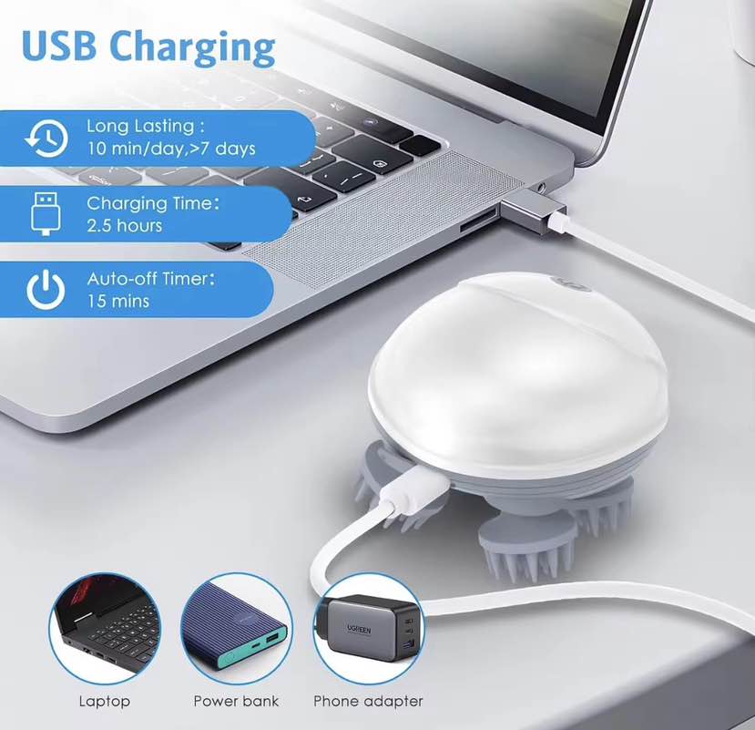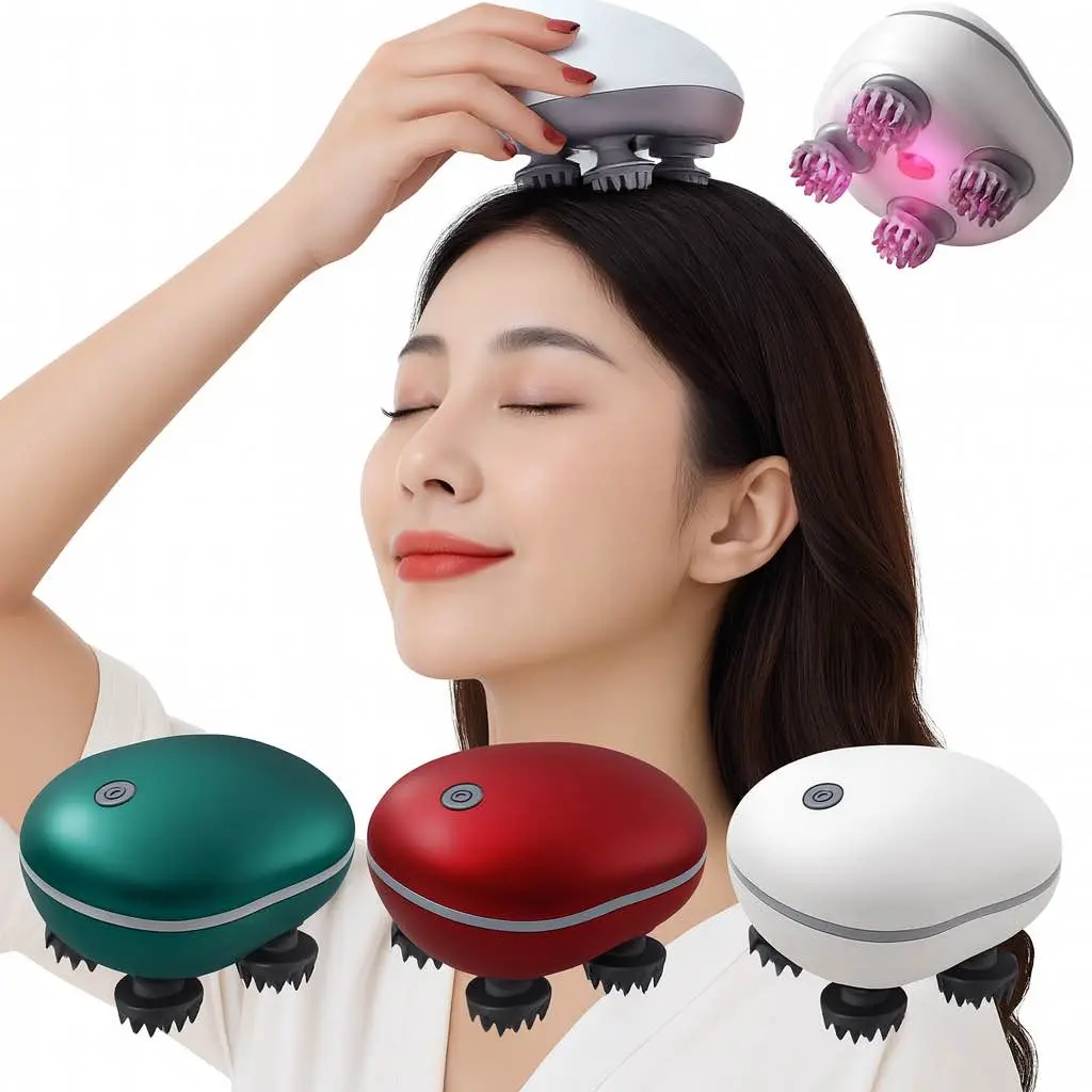 ✨ Electric Smart Scalp Head Massager 💆♂️💆♀️ | Kneading & Vibrating Device with 96 Massage Nodes | Red Light Therapy 🌟 Stress Relief, Pain Relax & Hair Growth Booster | Portable Handheld Massager for Men & Women 🐾 Pet-Friendly