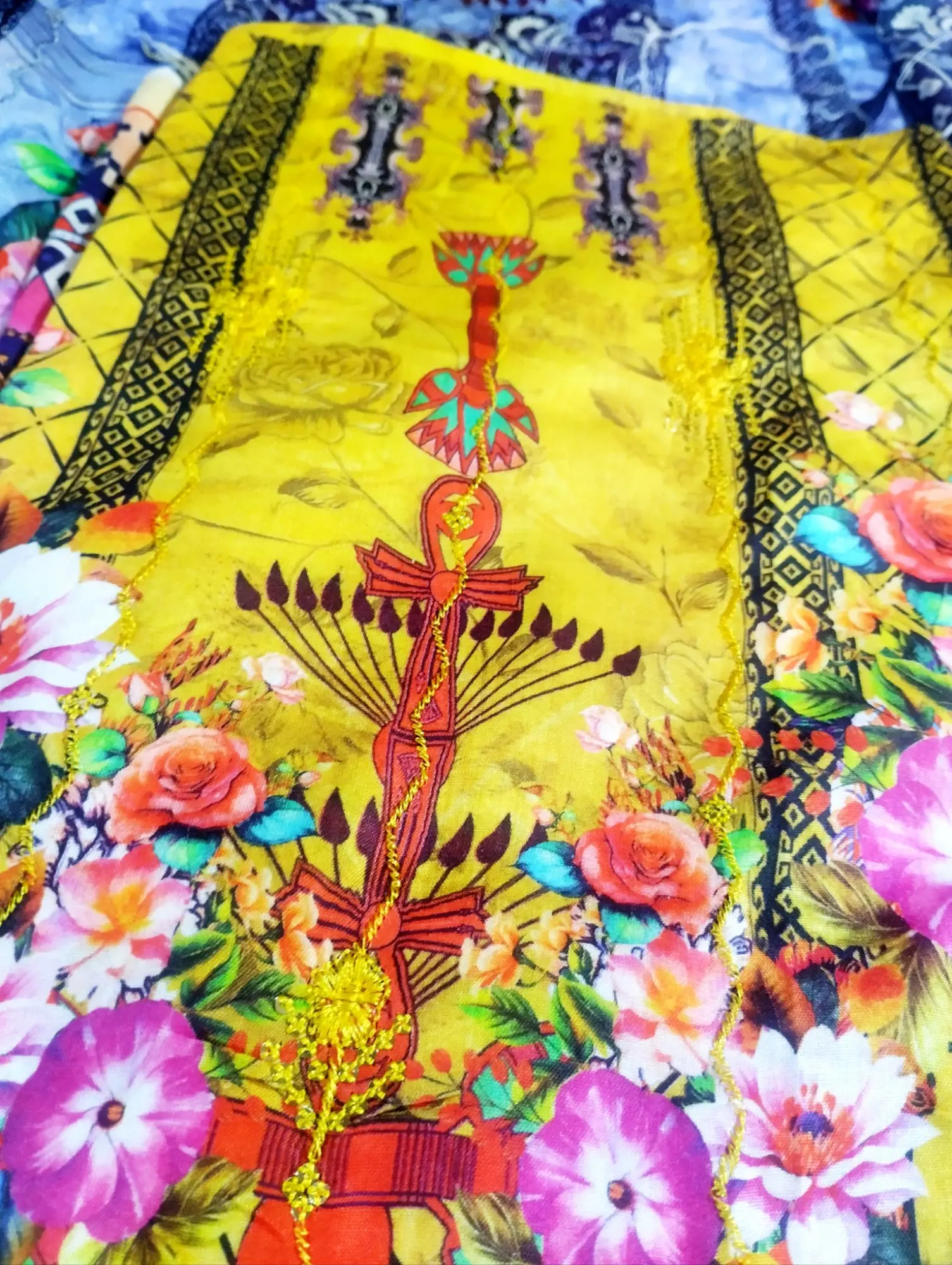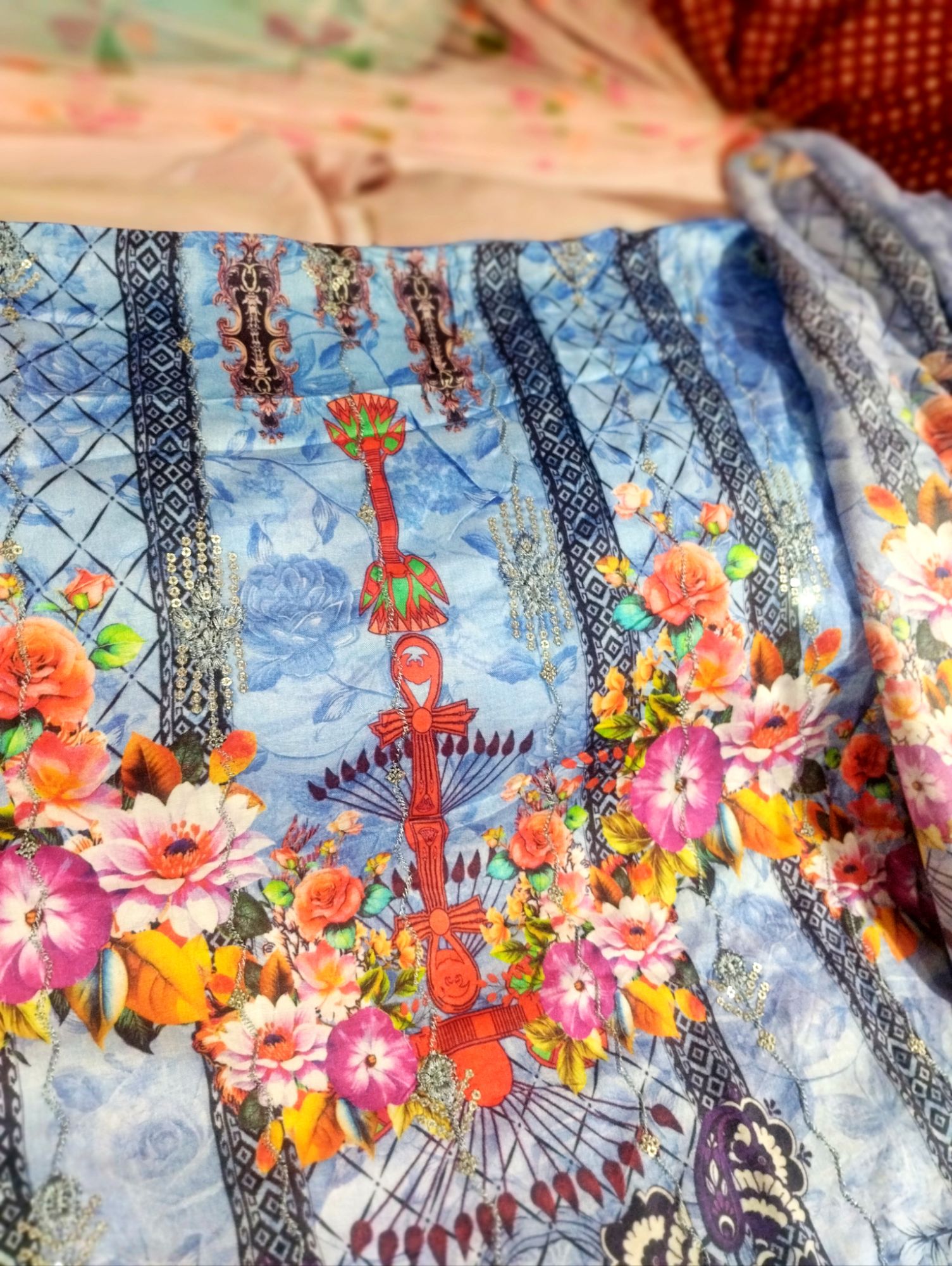- ডিজাইন: সিকুয়েন্সে সূক্ষ্ম এমব্রয়ডারির সাথে প্রিন্টেড