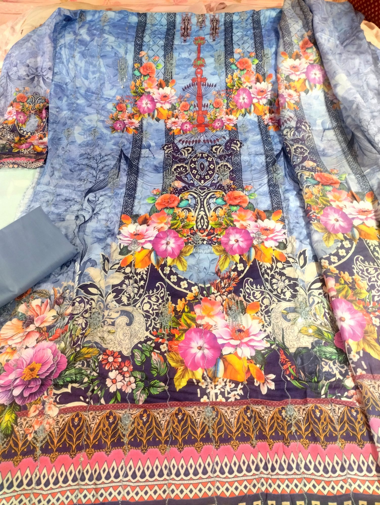- ৩ পিস সেট: কামিজ (টপ), সালোয়ার (বটম), ও ওড়না (দুপট্টা) অন্তর্ভুক্ত