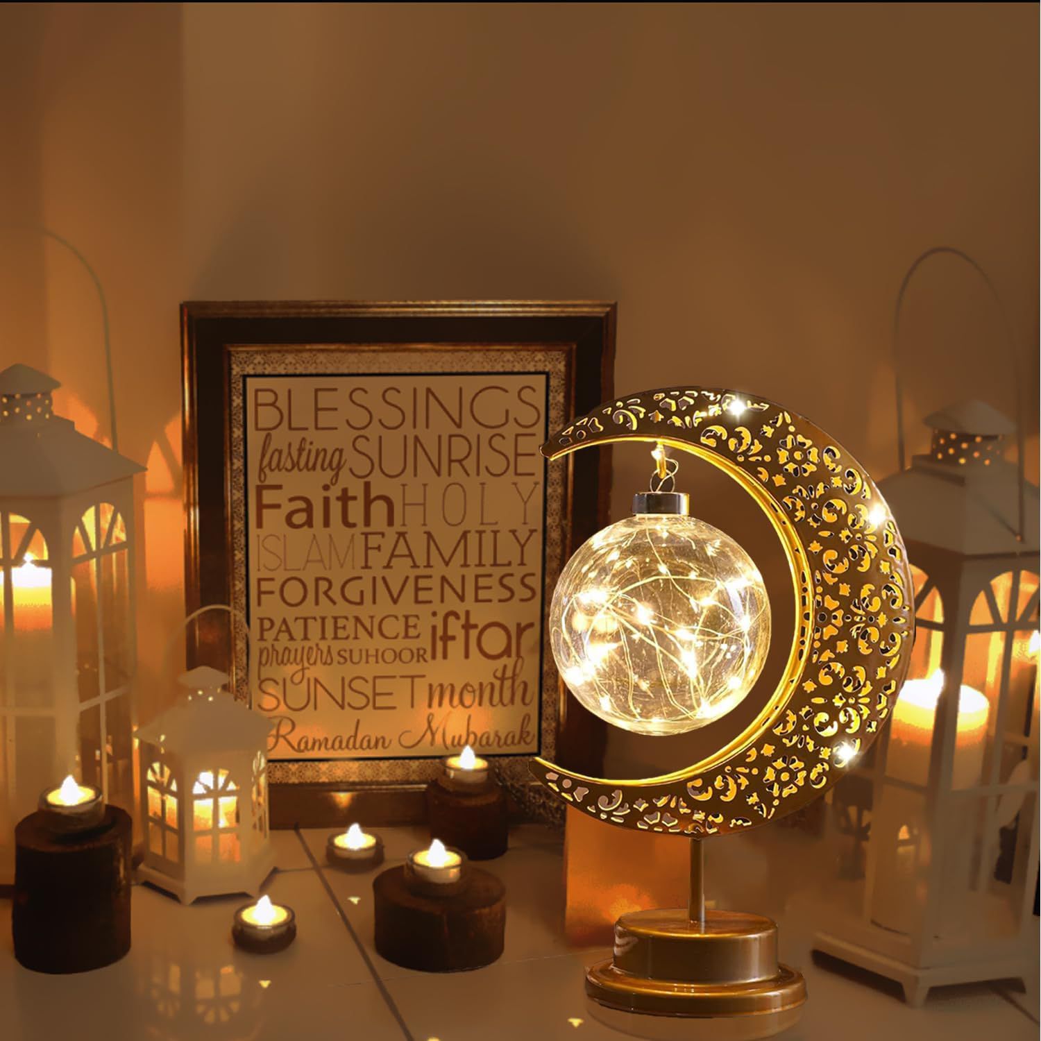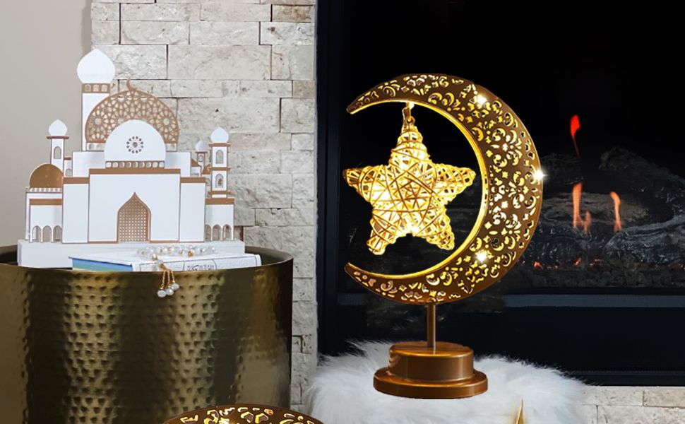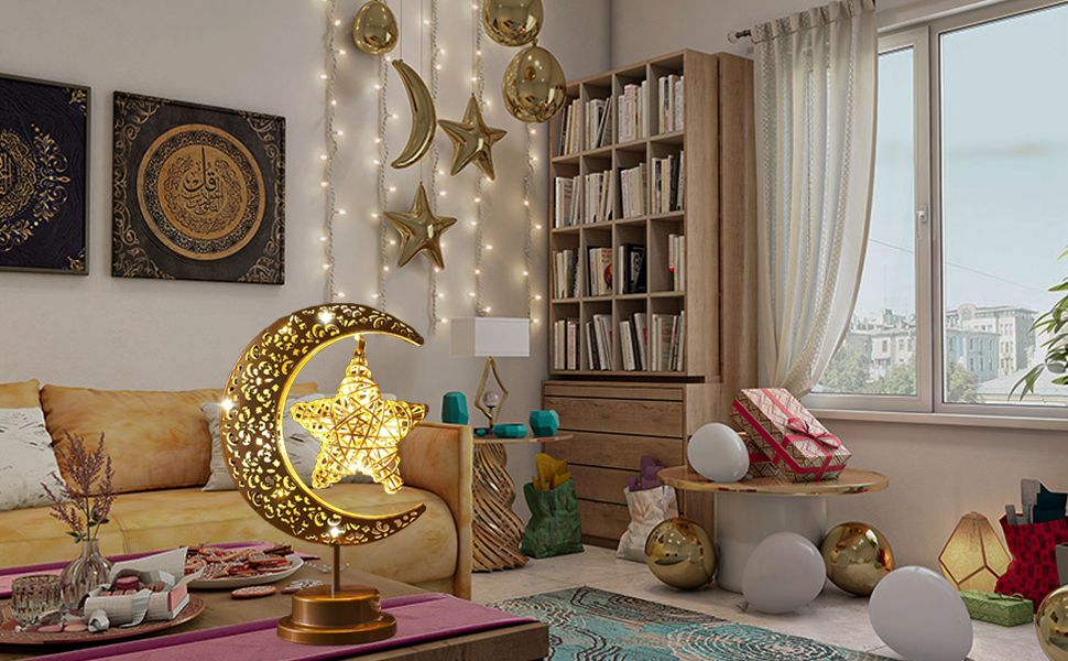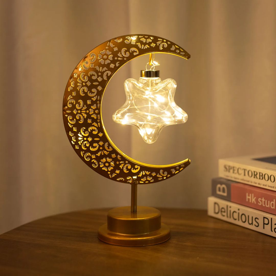 Bring a magical glow to your space with this elegant gold moon and star table night light. Its artistic design and warm LED lighting create a peaceful ambiance perfect for relaxation or decoration. Whether for daily use or special occasions like Christmas and weddings, this light adds charm and style to any setting.