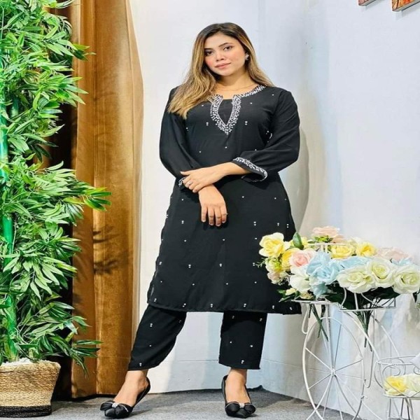 Embroidary and ston work silk top"s 2 peace ku-26A