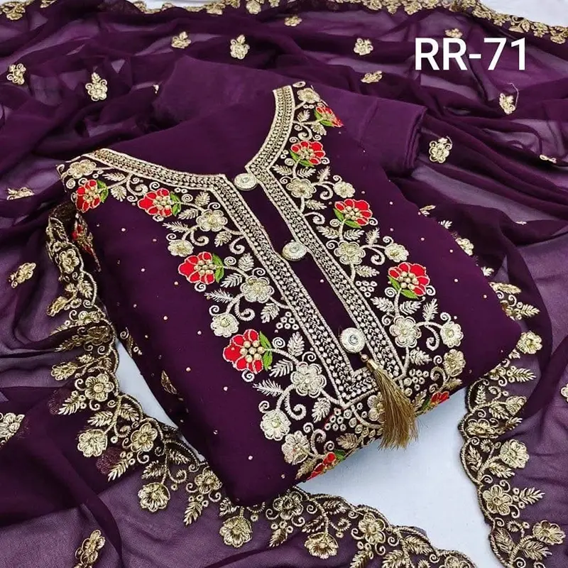 • Embroidery Premium Quality Unstitched/Unready Jorjet Four Pieces for Women/ Girl