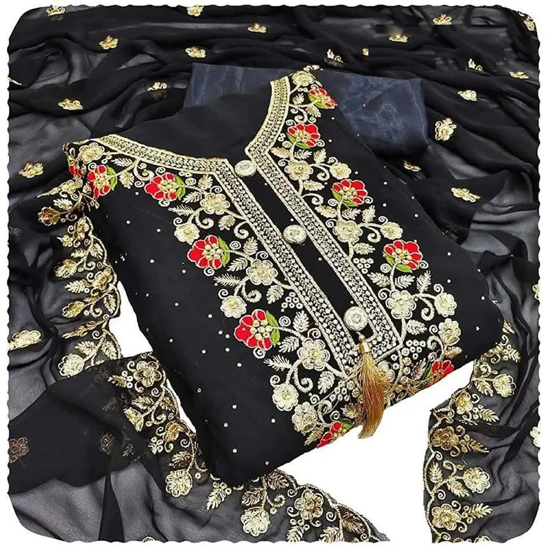 • Embroidery Premium Quality Unstitched/Unready Jorjet Four Pieces for Women/ Girl