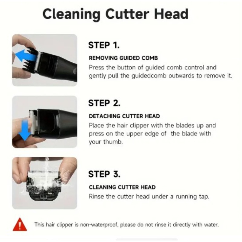 - Included: 1 Hair Clipper, 1 Built-in Guided Comb, 1 USB Type-C Charging Cable, 1 Cleaning Brush