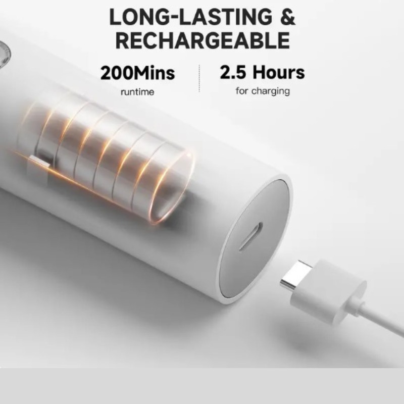 - Cordless Freedom with Type-C Charging: Powered by a long-lasting lithium-ion battery (often 600mAh to 1200mAh), providing up to 90-200 minutes of cordless runtime on a single charge. It uses a universal USB Type-C port for fast and convenient charging anywhere.