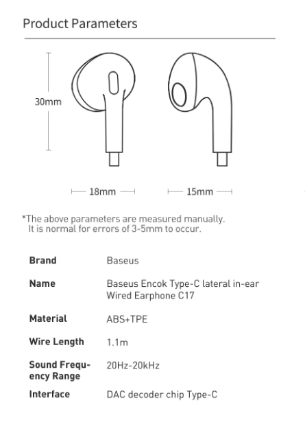 - Name: Baseus Encok Type-C lateral in-ear Wired Earphone C17