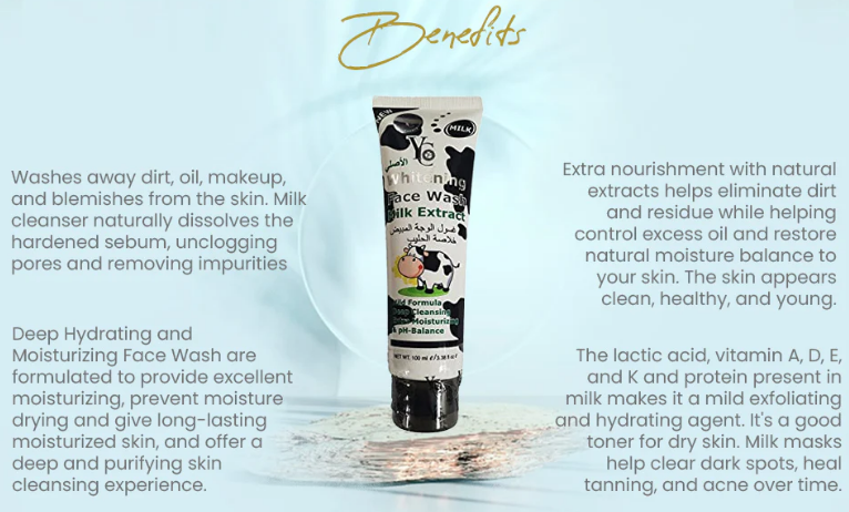 Deep Cleansing: Removes dirt and residues effectively, leaving your skin clean and fresh. Moisturizing Formula: Milk extract provides extra nourishment, ensuring your skin remains moisturized. Oil Control: Helps prevent and manage excess oil, making it suitable for oily and combination skin types. Restores Moisture Balance: Aims to restore the natural moisture balance, promoting healthy and hydrated skin. Youthful Appearance: Regular use contributes to a clean, young-looking complexion that feels moisturized.