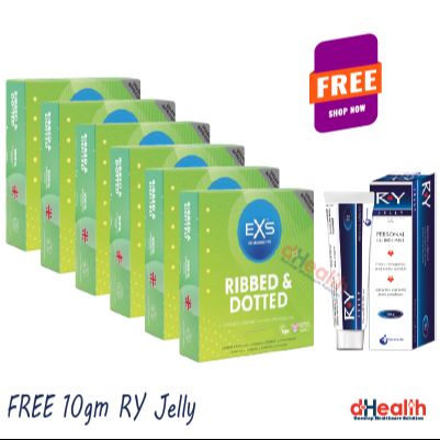 EXS Comfy Fit Ribbed & Dotted Condom Buy 6 get 1 Ry Jelly 10g (Personal Lubricant) Free Size:• Width: 54mm • Thickness: 0.073mm • Length: 192mm Why EXS Condoms: • Latex rubber condoms • Kitemarked • CE Marked • Vegan and PETA approved • No latex smell • Silicone based lubricated, non-spermicidal lubricant • Alcohol-free • Made in UK |