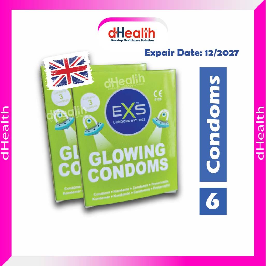 Smooth, plain, natural latex, flared, teat ended, and silicone lubricated condom. Amaze your partner with the EXS Glow in the Dark Condom. Simply hold the condom up to a light whilst in the condom wrapper then after 45 seconds put the condom on and be ready to glow! Size: • Width: 53mm • Thickness: 0.073mm • Length: 192mm Why EXS Condoms: • Latex rubber condoms • Kitemarked • CE Marked • Vegan and PETA approved • No latex smell • Silicone based lubricated, non-spermicidal lubricant • Alcohol-free • Contains: Natural rubber latex and water based lubricant.