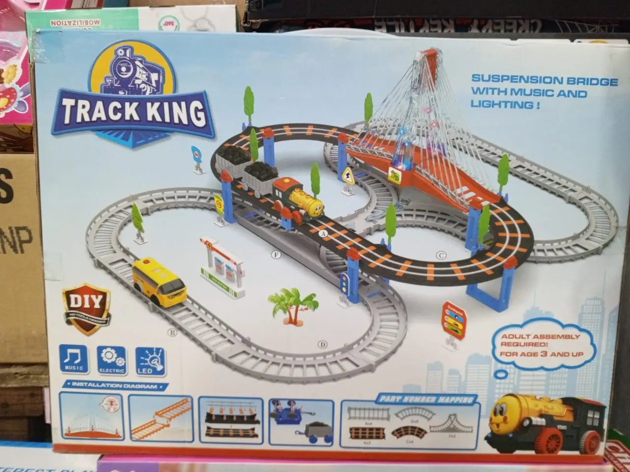 - Fab N Funky Track King Double Train Set: A multicolor train set with music, lighting, and a suspension bridge, providing an engaging play experience for young train enthusiasts.