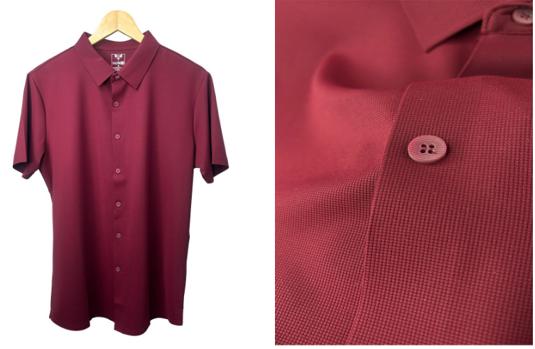 The micro-mesh textured fabric improves airflow and provides superior ventilation, making it ideal for warm weather and active lifestyles. The structured collar and button placket give the shirt a polished appearance while maintaining sporty functionality.